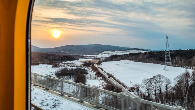 这一天就在交通工具上渡过了,在飞机上看着日出,在火车上看着日落。