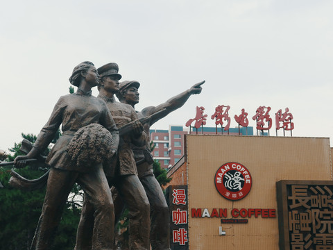 在长影旁边,有一个广场——【中国长影电影院】,门口的设计超级好拍照,出片率超高。在这里拍照是不需要费用的,如果你想怀旧,也可以和朋友约一场电影。