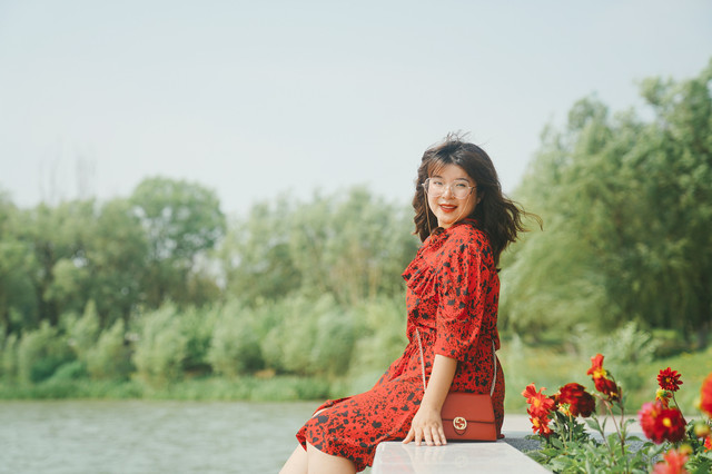 1.附近的草坪,拍照野餐都超棒!穿上长裙,理好发型,一秒变身森系小仙女~
