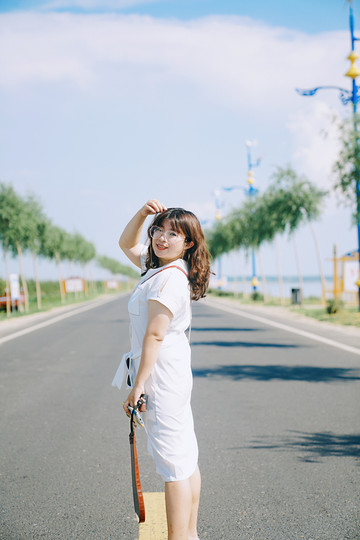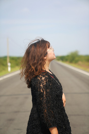 3.公路,趁人少车少的时候,往中间走,随意自在,公路大片拍起来!注意看车噢~