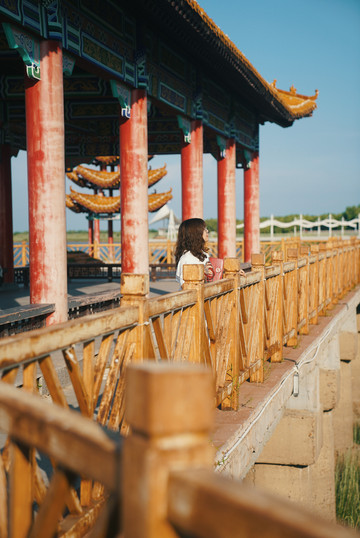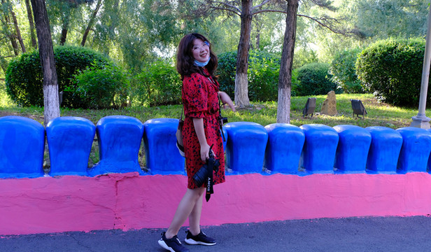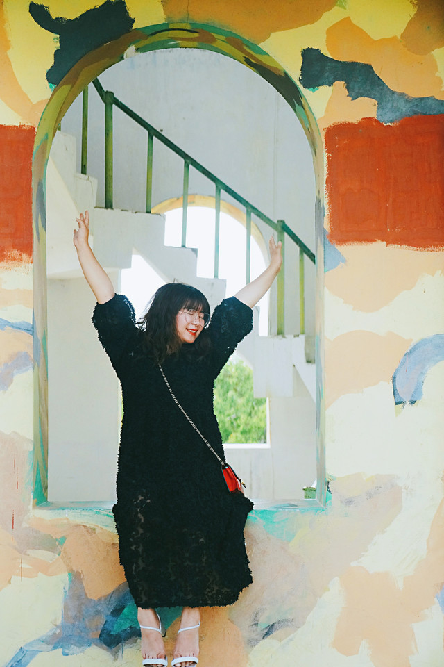 这里真的太出片了~迷彩的花纹、圆拱门、斑驳的栏杆,满满的都是故事感。绿色的杏树林背景,好看又干净的感觉,轻风撩起裙摆,摘一片树叶遮住眼睛,文艺风大片谁看了不说好~