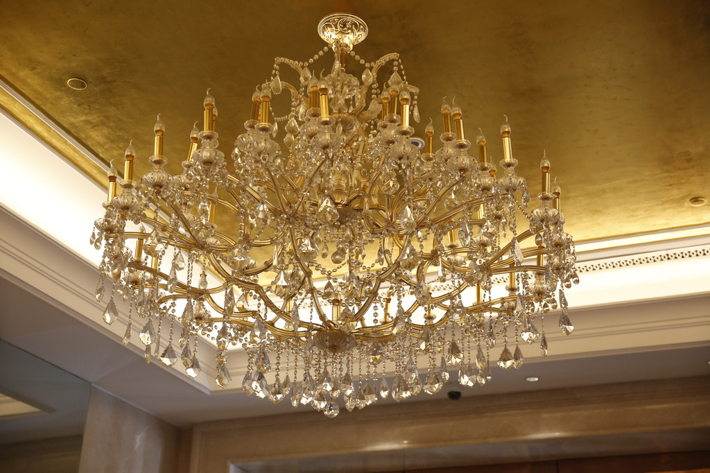 法式浪漫风格酒店,一秒穿越到异国他乡。极尽华丽的水晶吊灯,欧式特色的巨大窗帘,细节处可以在廊柱、墙壁看到考究的细腻古典花纹。