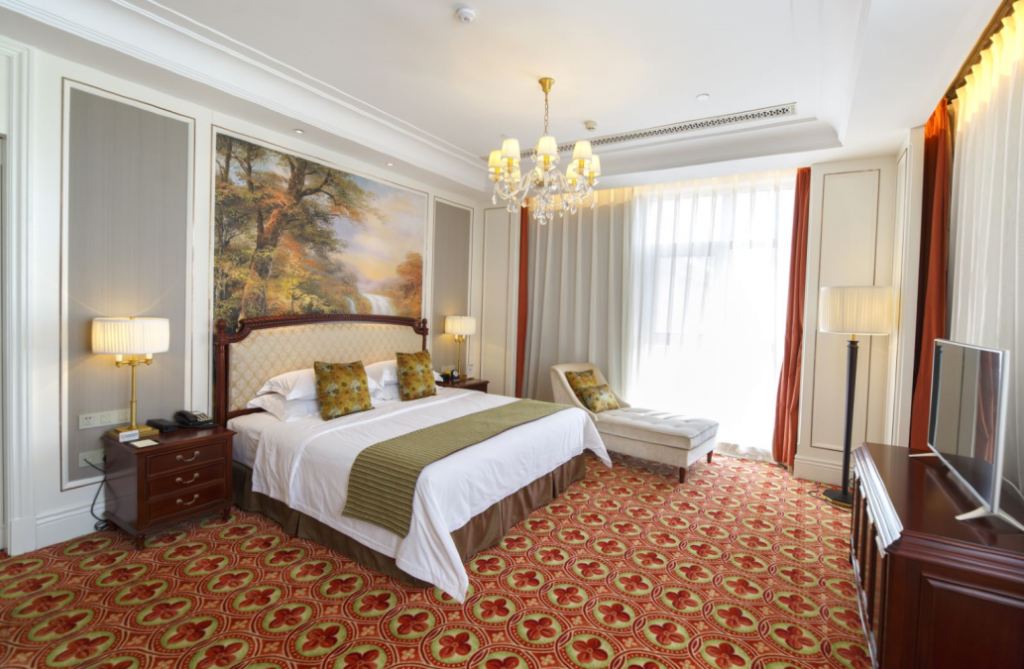 开阔的空间和开放的视野不会让人在房间里感觉压抑,法式风格的客房总是无意间透漏着尊贵的感觉。