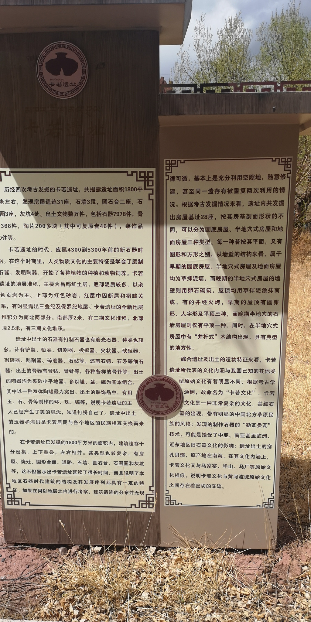 卡若遗址出土文物记录了4300年到5300年前人类活动的轨迹,那个时候人类还处于新石器时代,我想,也许那个时候的青藏高原还是一个海拔很底的大平原,只是造山运动,让这里成为了青藏高原,因为从遗址周围的山体褶皱情况可以看出。