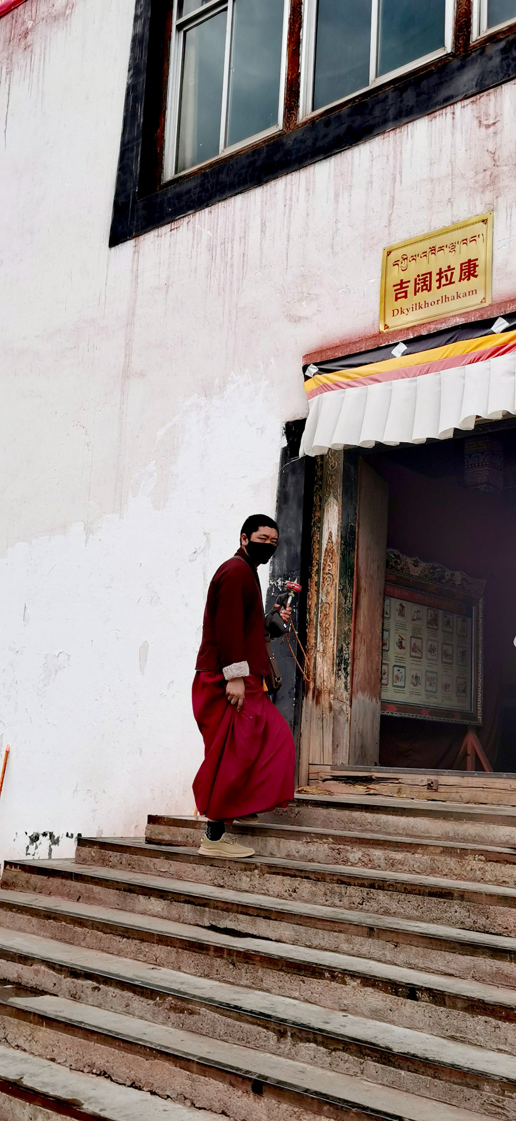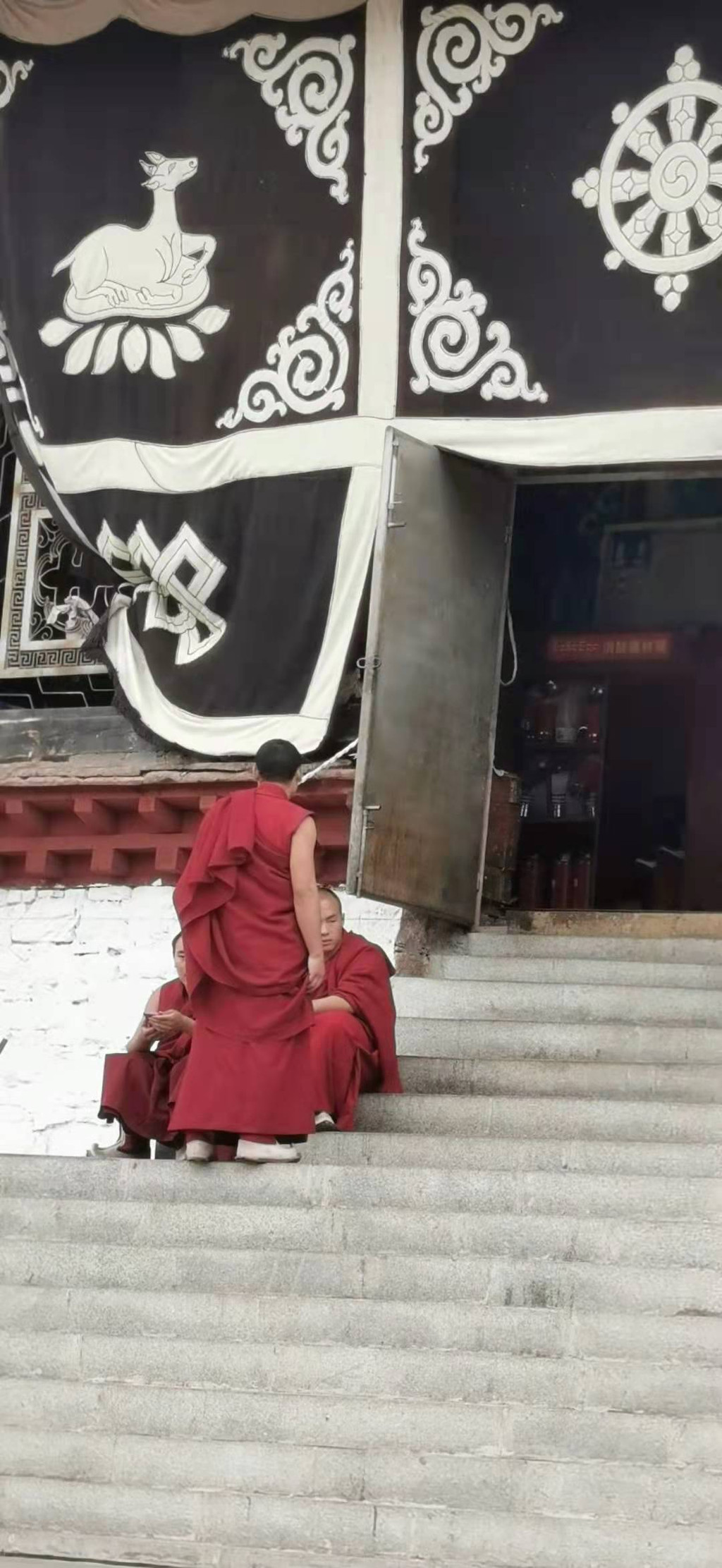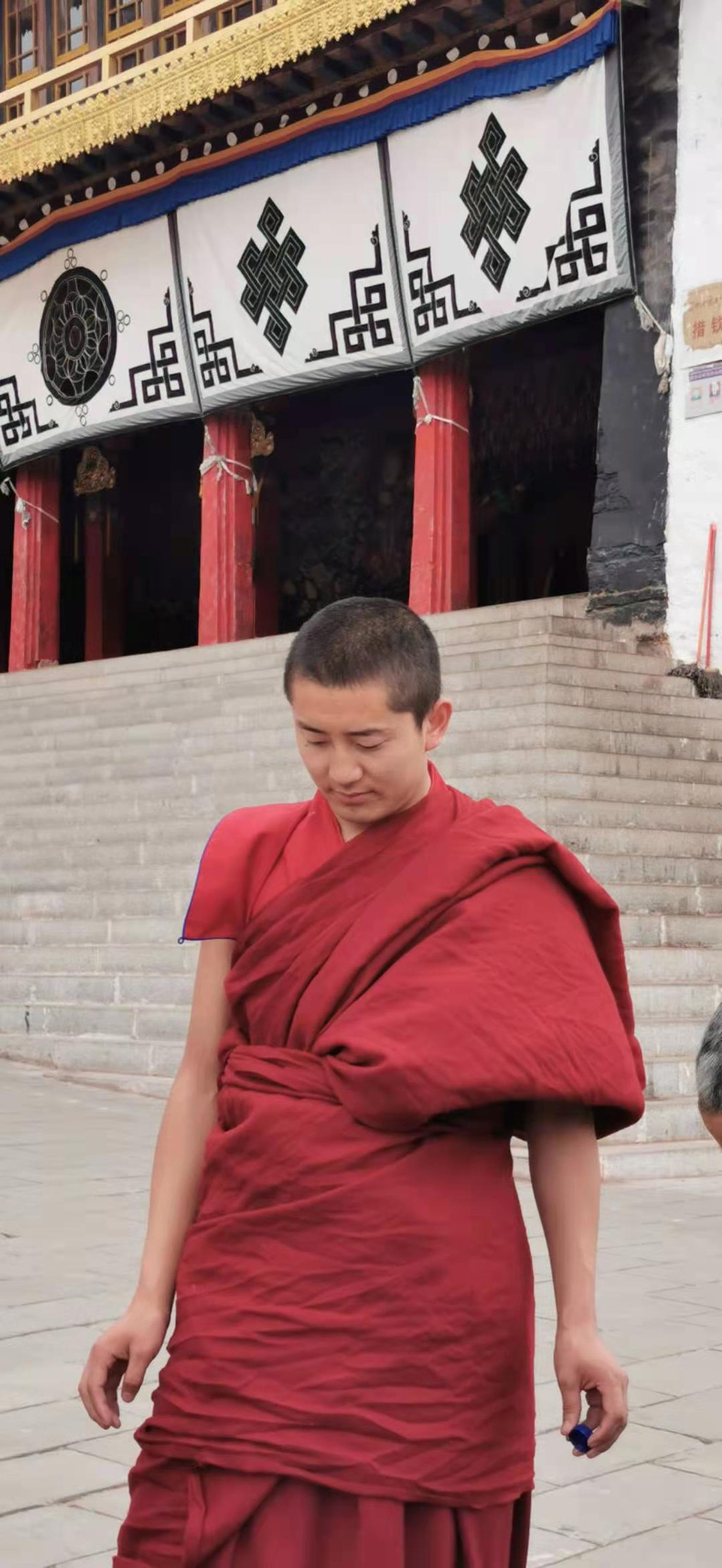 我上前与这个小师傅进行交谈,他告诉我他来到强巴林寺,已经7、8年了,我问他想家里的人吗?家里的人想他吗?他羞涩的告诉我有一点点想。