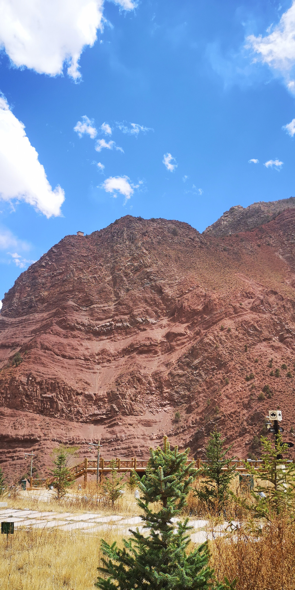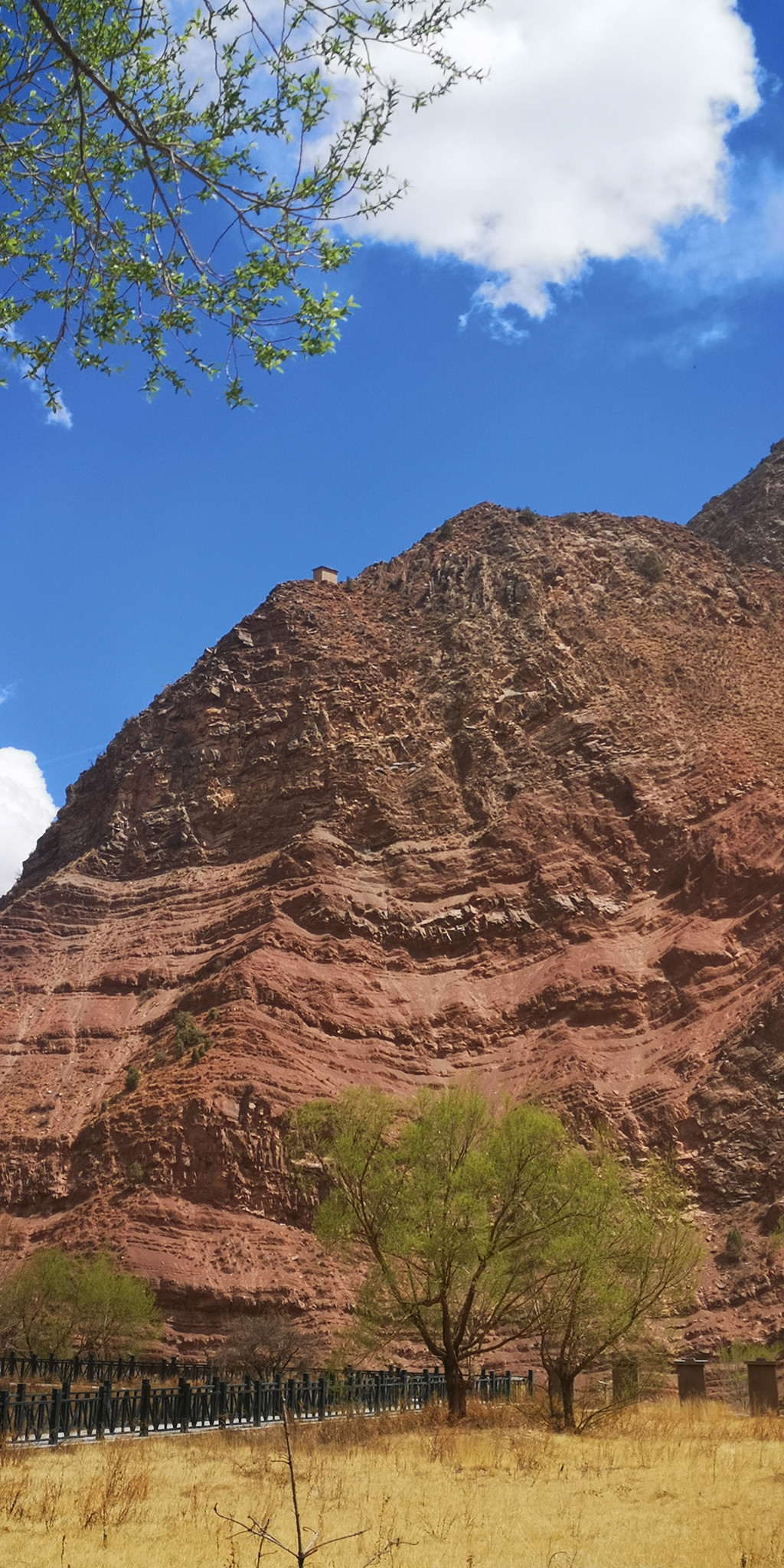 从远处山体的褶皱可以看出,造山运动的痕迹。