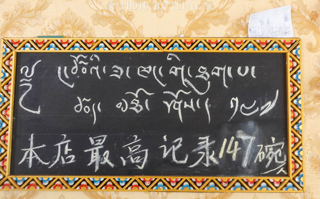店家告诉我们,欢迎大家挑战,只要有人打破147碗的最高纪录,就可以获赠50头牦牛,而且还可以终身免费来吃。每吃一碗就用边上的小石子来记数,虽然每一碗都很小,但是当我们真正吃起来,10碗以后就感觉很饱了,吃得最多的一人也只吃了28碗,吃到肚子撑着难受,再也无法多吃,连147碗的零头都不够,不知道这147碗的记录是谁创造的,也不知道谁能真正来打破这个记录,获得50头牦牛的奖励,你敢来挑战吗?
