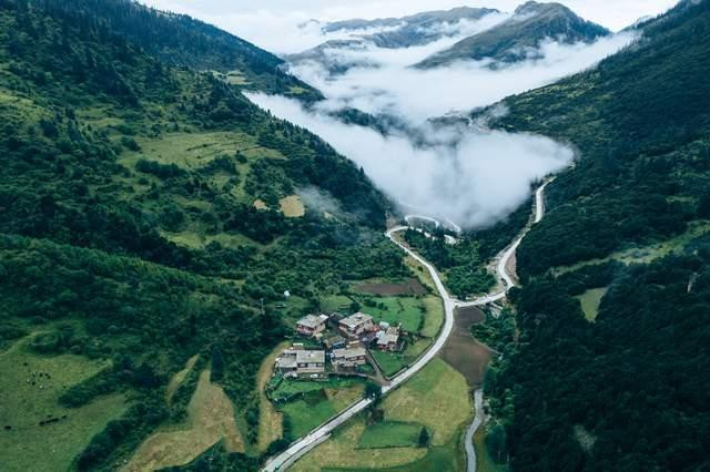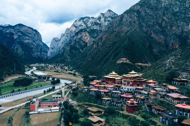 317国道旁的瓦拉寺然而,伴着汗水与绝望,“跨越横断山脉”这一过程还有很多美妙。西藏西部像火星一般荒芜,而东部横断山脉这一片自古以来被称为“富饶之地”。由于南亚热带气压可以顺着澜沧江、金沙江、怒江河谷向北流动,致使横断山脉中覆盖着茂密的原始森林。丰沛的雨量带来农作物丰收,稍微平坦一点的地方都能看到农田和村落。那种遇见,像闯入了世外桃源,满足了印象中对“诗和远方”的幻想。