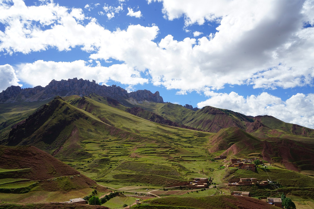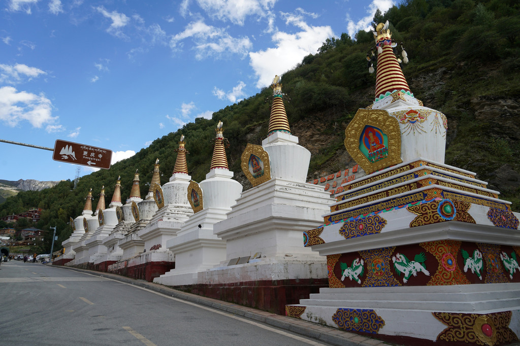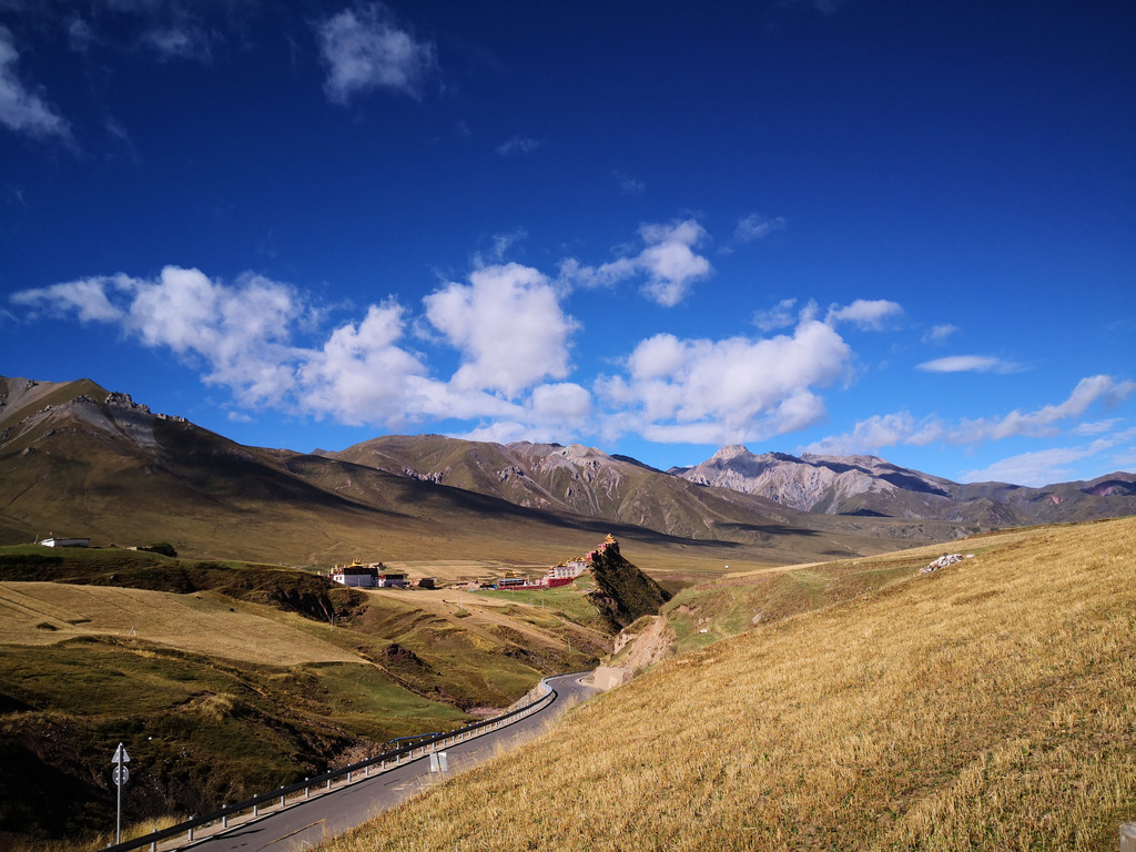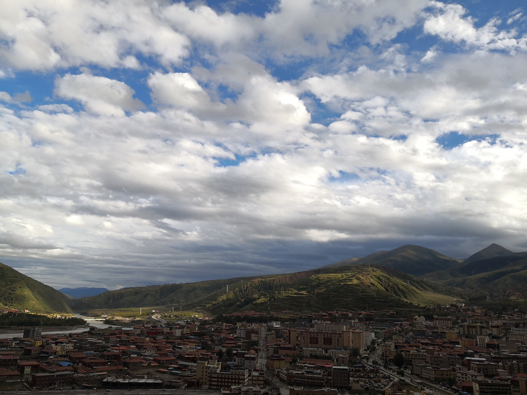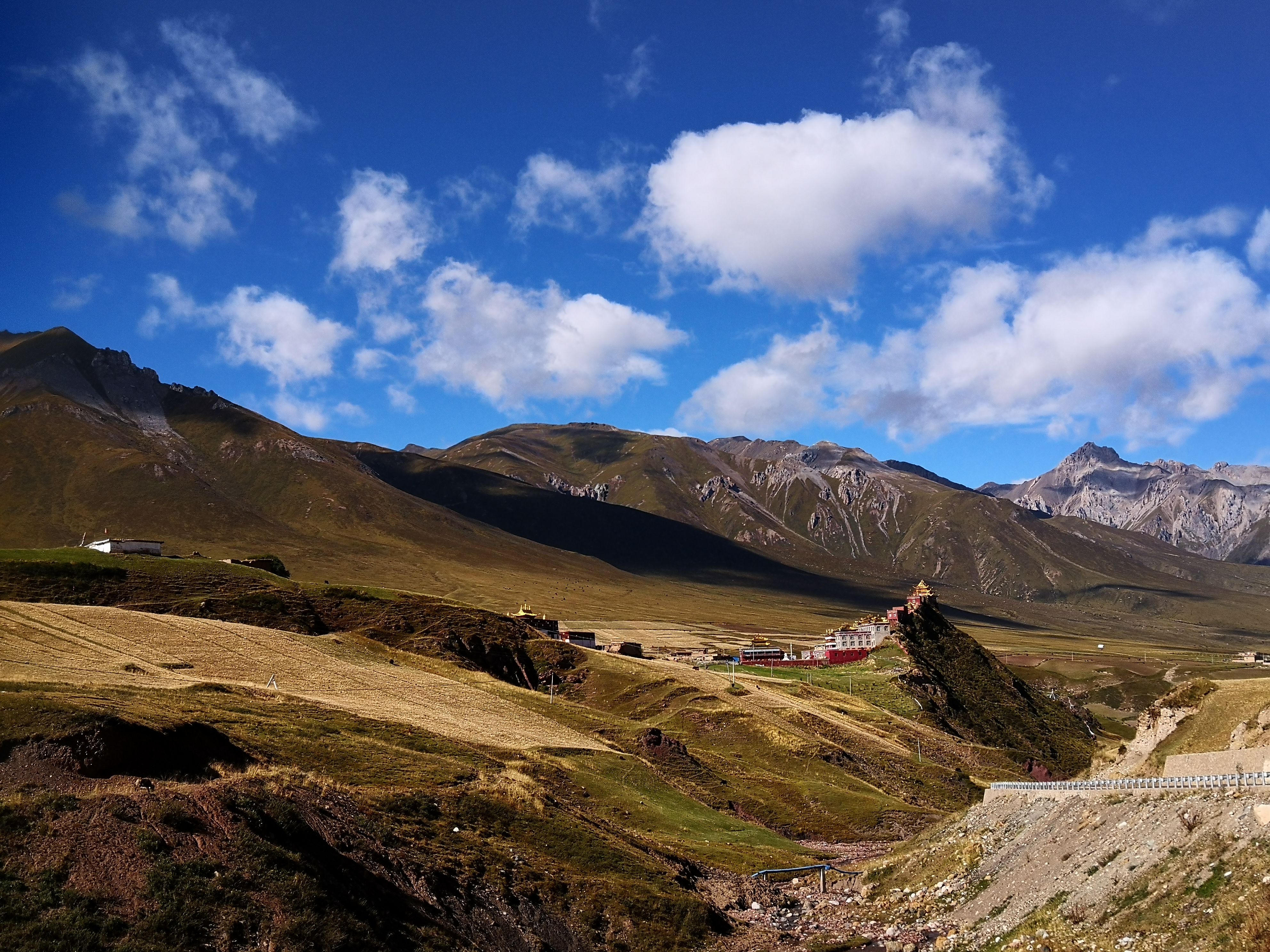 马尔康是四川阿坝州首府,下午天气晴朗,去看看昌列寺。昌列藏语意为“闭关处”,果真是隐蔽在高高的昌列山上,垂直高度900多米。山路陡峭难行,弯弯曲曲从谷底开始,像梳子一样来回爬升。