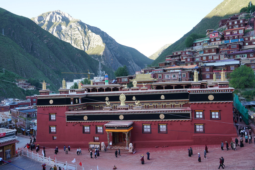 再沿着山间小道回到广场,夕阳之下找个台阶坐着,静静地看着藏民永不停息地转经祈祷,真切感受一下佛主的力量。