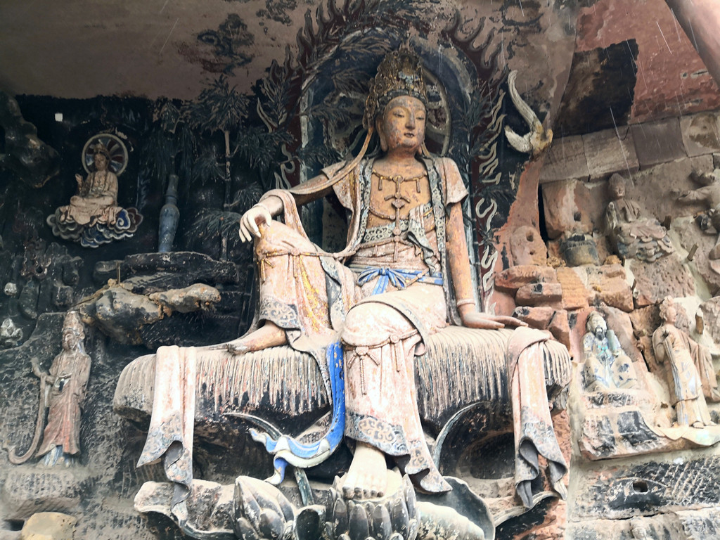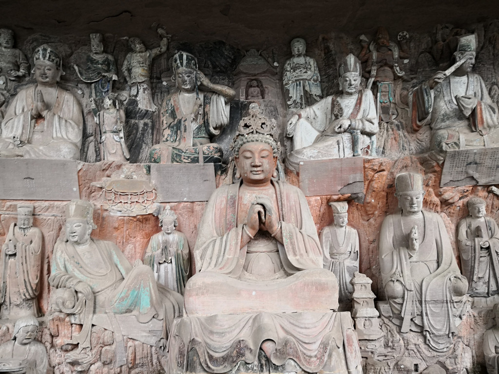 安岳县石羊镇毗卢洞因“水月观音”而著名,这次行程特意安排参观一下。该石窟开凿于宋代,进景区门便是柳本尊十炼修行图,图文并茂,保存完好。