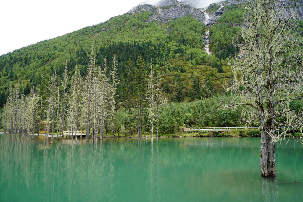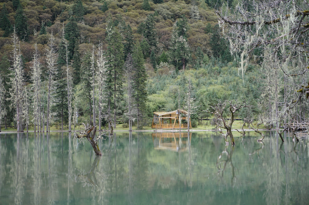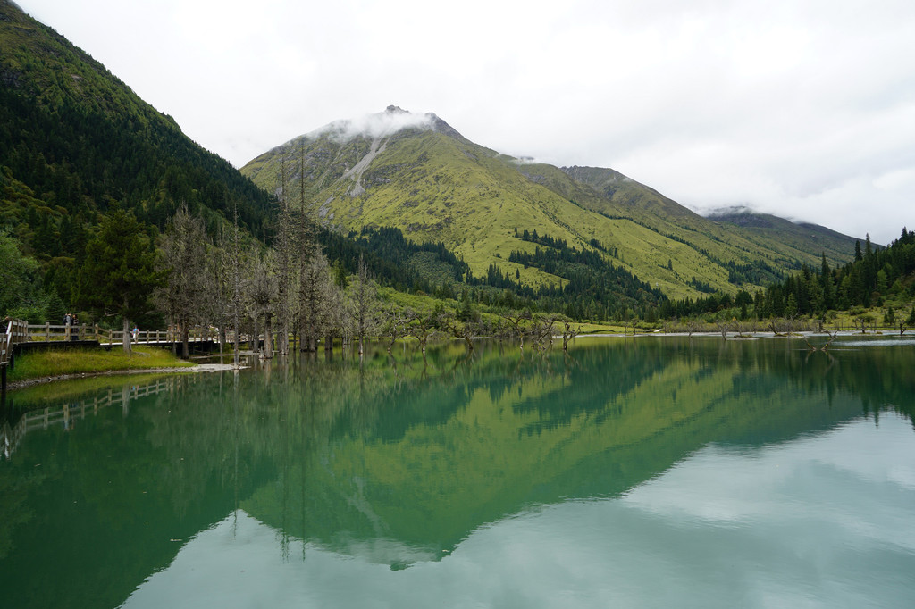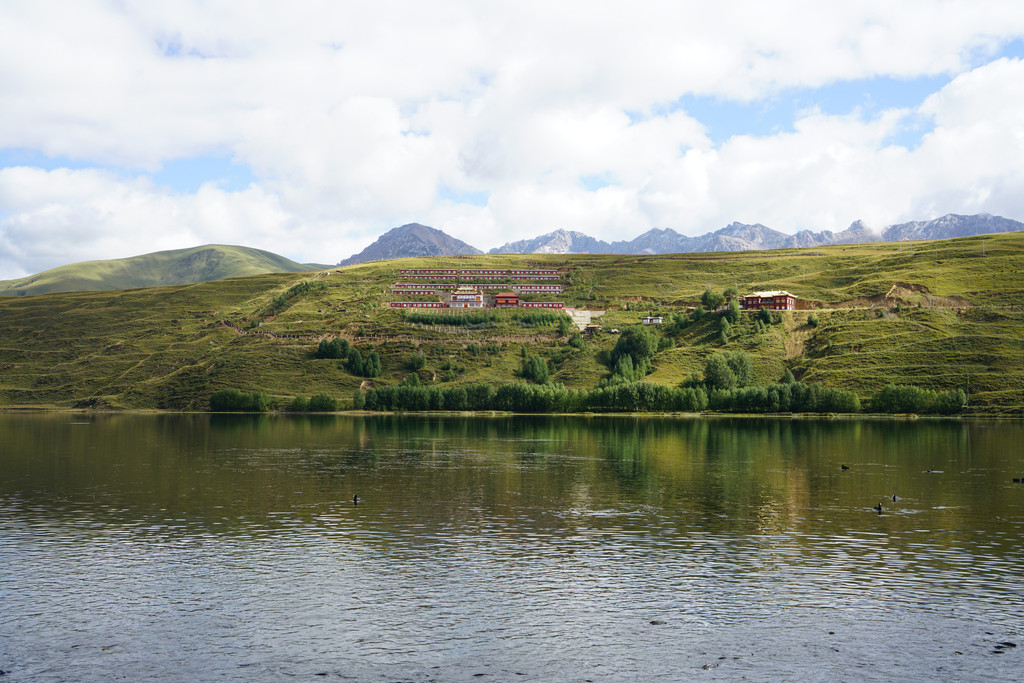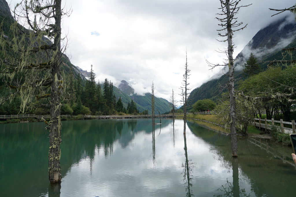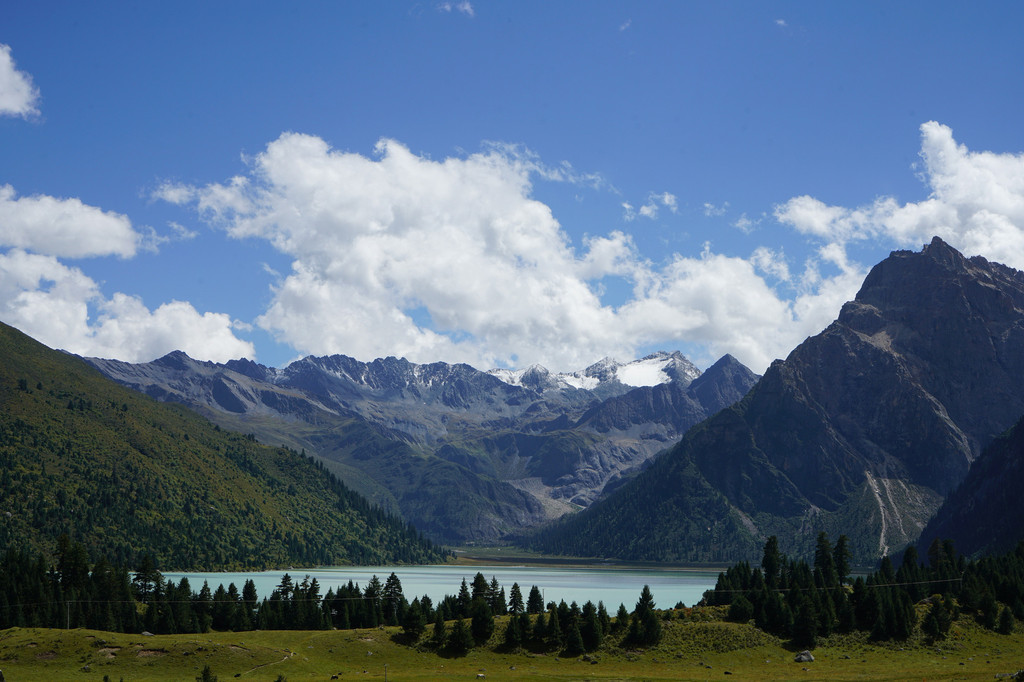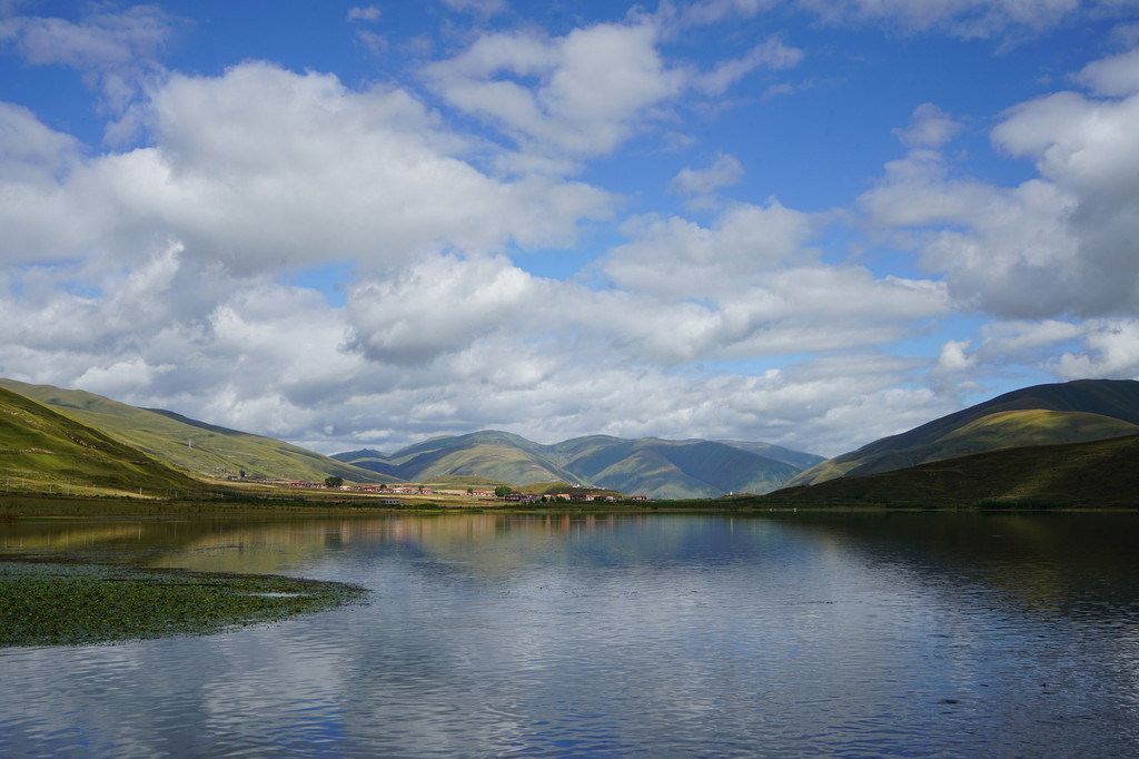 卡萨湖就在国道317旁,湖水清澈,群山映衬。