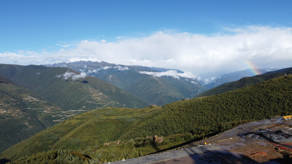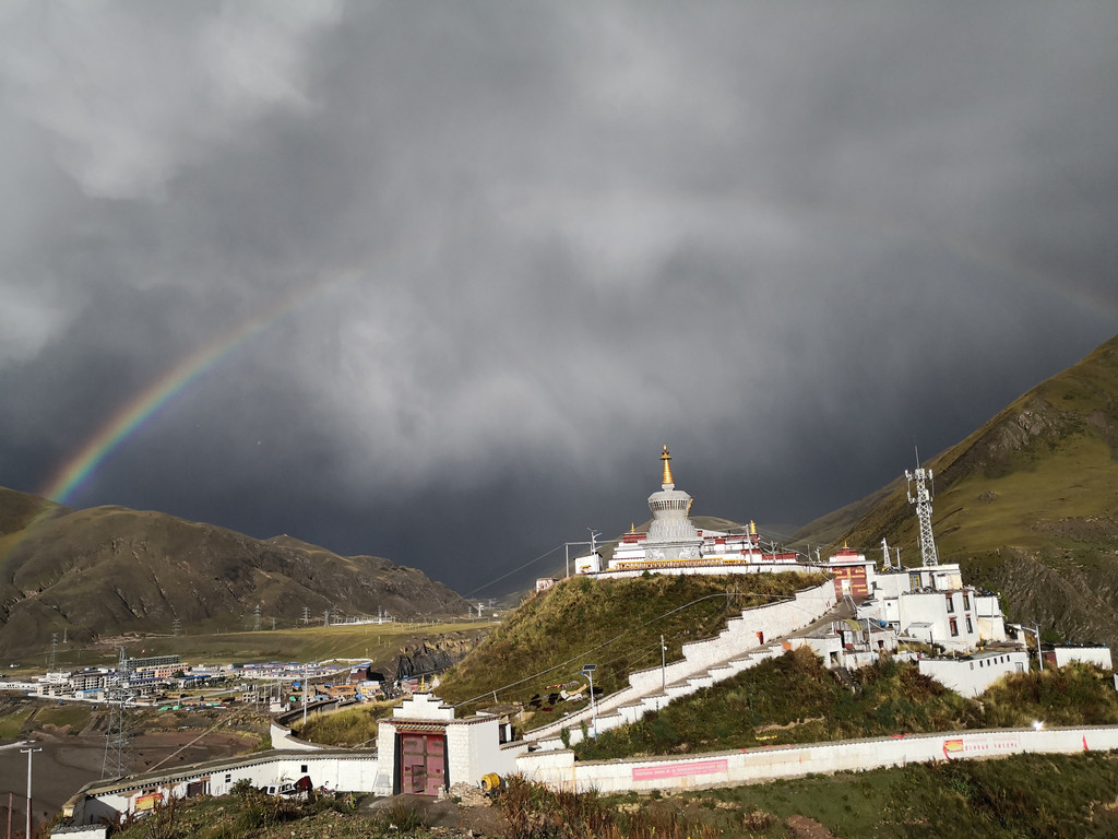 依依惜别之后,看着天色还早,开车看看高原草甸,路上突然风云再起,上到山顶彩虹再现。