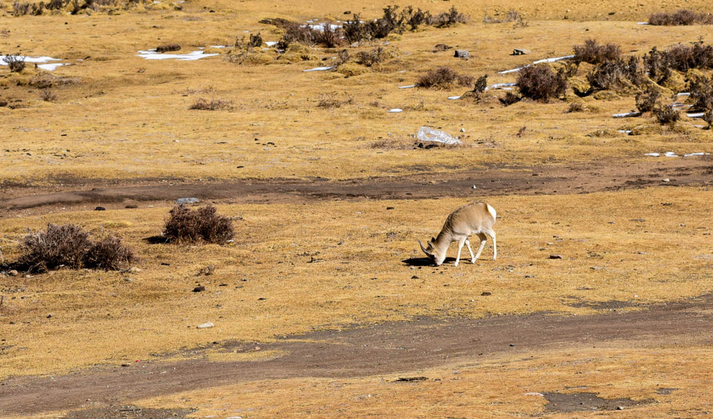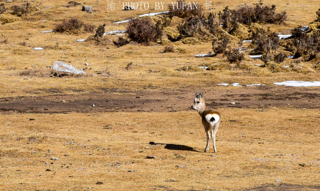 当我们升起无人机,可以以上帝的视角俯瞰峡谷的村落、之字形道路,还可以远处连绵起伏的雪山,每一个角度都如同一幅画卷一般。最令我们兴奋的是,在垭口上我们还拍到两只野生的藏羚羊,虽然很快就跑开了,却给我们留下一个美丽的背影,尾部的皮毛还是一个可爱的心形。