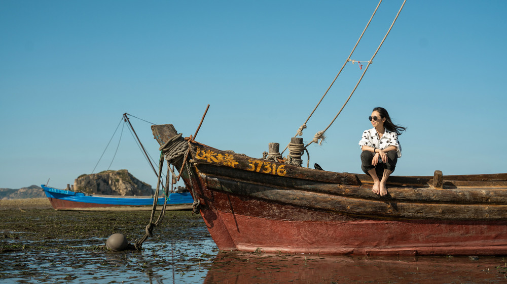 这艘横倒在沙滩上的破船,当地人习以为常,但在内陆游客的眼里可新鲜得很。我们围着船拍了好久,心满意足离开后,发现朋友圈里也有人也与它合过影。说不定以后这艘破船会成为小长山岛的网红景点呢。
