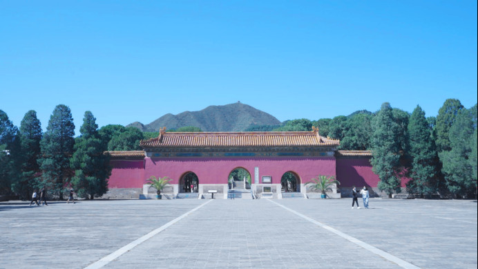 明十三陵,世界文化遗产,全国重点文物保护单位,国家重点风景名胜区,国家AAAAA级旅游景区。总面积一百二十余平方公里,距离天安门约五十公里。十三陵地处东、西、北三面环山的小盆地之中,陵区周围群山环抱,中部为平原,陵前有小河曲折蜿蜒。自永乐七年(1409)五月始作长陵,到明朝最后一帝崇祯葬入思陵止,其间230多年,先后修建了十三座皇帝陵墓、七座妃子墓、一座太监墓。共埋葬了十三位皇帝、二十三位皇后、二位太子、三十余名妃嫔、一位太监 [17] 。截止2021年,已开放景点有长陵、定陵、昭陵、神路、康陵。