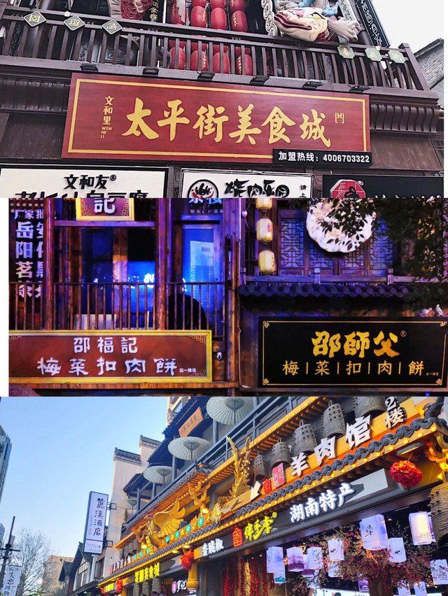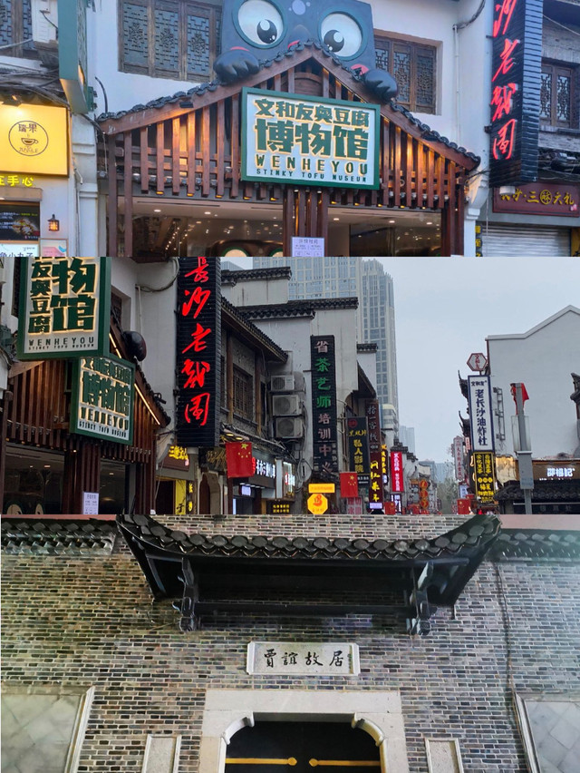 建议傍晚来到这里,这里基本上包含了所有长沙网红小吃,臭豆腐(黑色的最好吃),茶颜悦色(强推幽兰拿铁)半仙豆夫 ,妈妈茶 ,文和友老老长沙大香肠, 胡记炸炸炸,绍记梅干菜扣肉饼)