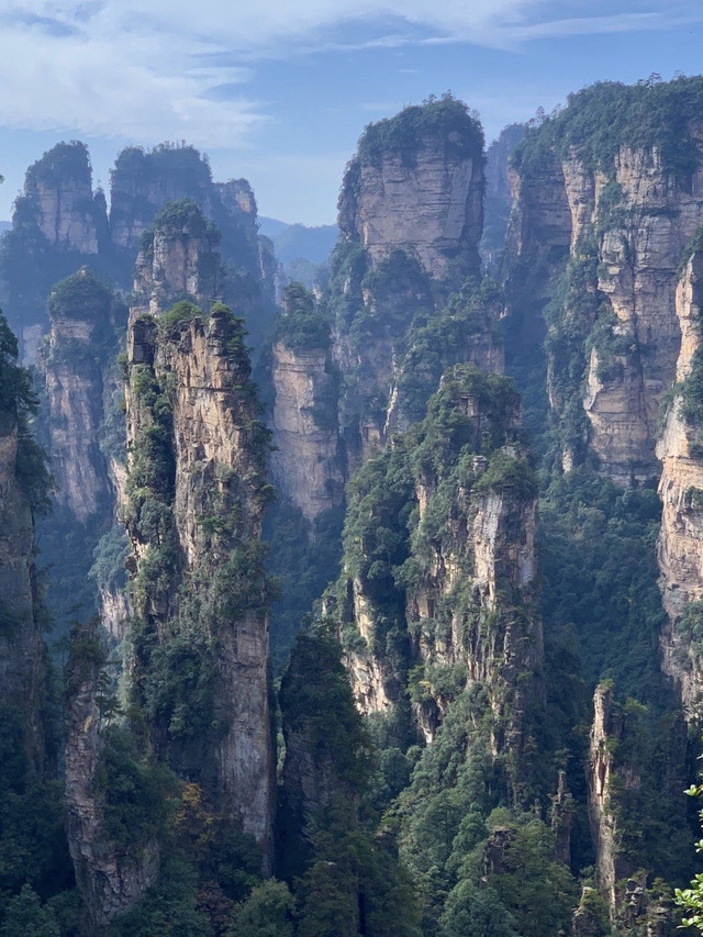 站在袁家界景区的观景台上,三千奇峰尽收限底,雄险秀野,神态各异。峨谷深处,千百根石峰,石柱奇伟突立。峭峻之石,如美武将帅;嵯峨之峰,似勇猛壮士,有声有色,若静若动,形象逼真,呼之欲出