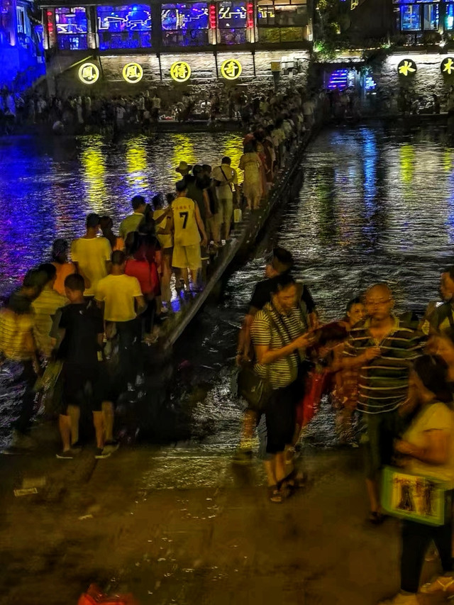 白天的时候可以在古城里逛逛,看看徽派建筑和当地特色的苗家吊脚楼。晚上的时候就能漫步到南华桥,站在上面看着看到灯光闪烁,基本上可以看到大半个古城的样貌。最推荐的是可以夜游沱江,坐在船上看到的景色又别有不同。
