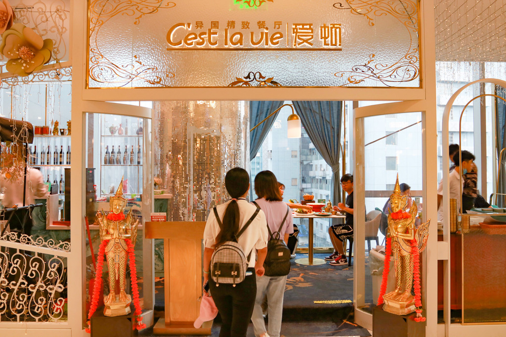 这是一家超级有格调的餐厅,以泰式风格设计,装修特别好,给人一种庄重典雅大气高贵上档次的感觉,非常有泰国三峰,而且这个餐厅还可以选择露天和不露天两种选择。