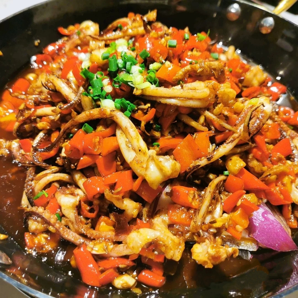 这道菜是长沙经典湘菜之一,大街小巷也能看到。但麓湘小镇也做出了自己的独特风味。直接端锅上桌,再翻炒,西芹、辣椒和牛肉的香味四溢,米饭杀手就是它啦~