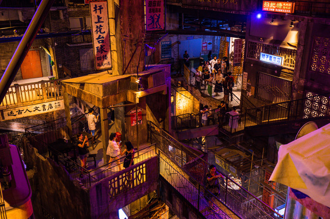 山城真的是一座很迷幻的城市,丰富的山形地貌,让你不得不在敬畏自然的同时,感叹劳动人民的智慧与辛劳,这是多少双手脚,多少滴汗水才能在这么复杂崎岖的环境里创造出一座灯火辉煌的城市。在重庆那天是阴天,雾蒙蒙的,我们驱车横穿千厮门大桥,对岸的建筑仿佛海市蜃楼一般,下半截本就因为地势参差不齐,又伴着水雾忽隐忽现,一下就理解了千与千寻为什么选重庆为取景地。
