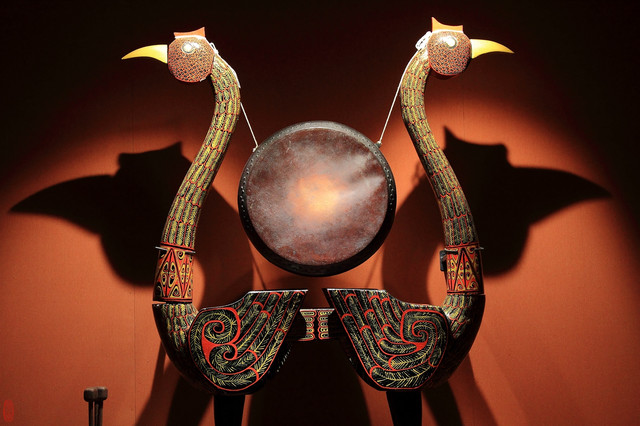 以虎为座、凤鸟为架的悬鼓,是楚国特有的一种乐器