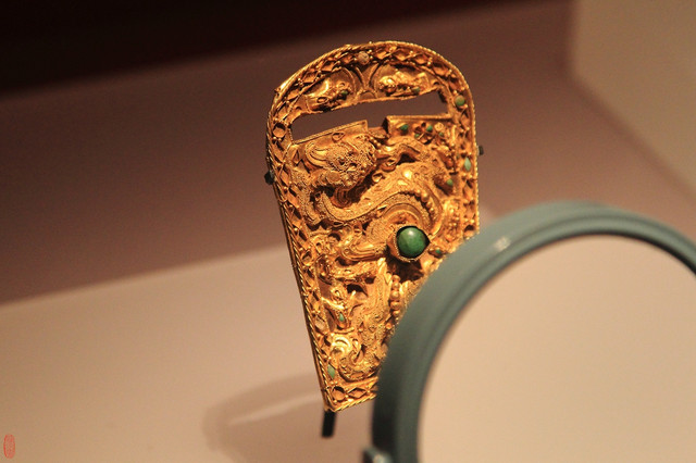 西晋·金带扣,缀满金珠,并镶嵌46颗绿松石