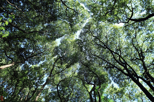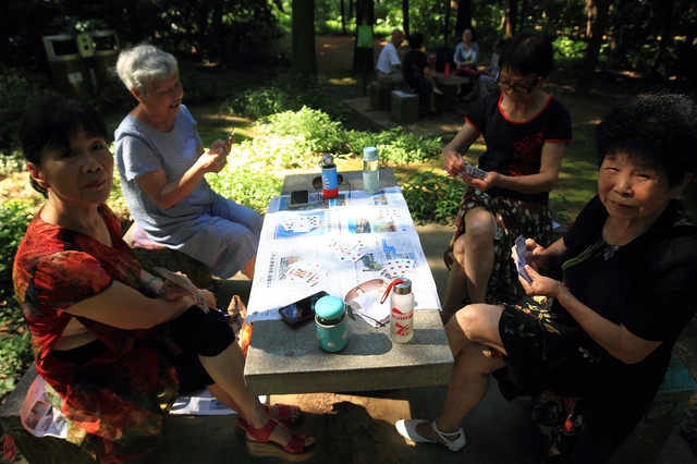 公园的树很高很茂盛,大太阳都被树叶遮住了,炎炎夏日奶奶们三五成群打着牌甚是惬意