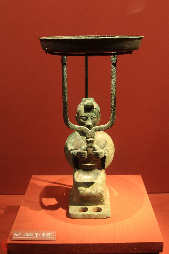 战国·人形跽坐铜灯。中国最早的灯具始见于战国,而人俑灯则是战国时期青铜灯最具代表性的器物