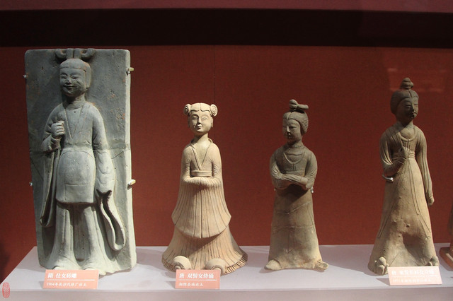 隋·仕女砖雕和唐·双髻女侍俑,可以看出隋唐刻画女子的艺术形象非常接近,都是面庞丰润