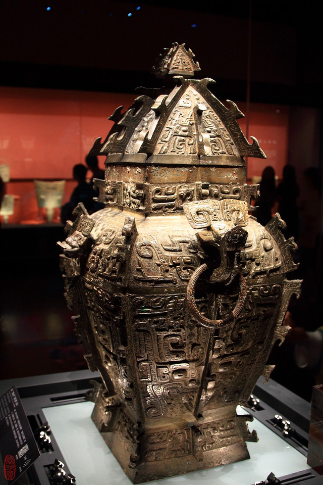 皿方罍:器型硕大,雕刻精美,富丽堂皇,是中国晚商青铜器鼎盛时期的代表之作,充分反映了中国青铜器铸造鼎盛时期的高超技艺和摄人心魄的气势,被誉为“外形与内涵”兼具的“神品”,堪称“方罍之王”