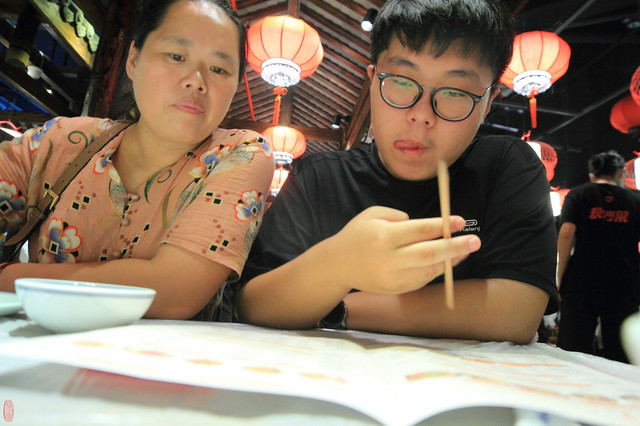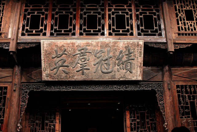 “绩冠群英”处的房子和祠堂。据说,这间古屋是为了体现湘西风情从湖南某镇一砖一瓦搬过来的