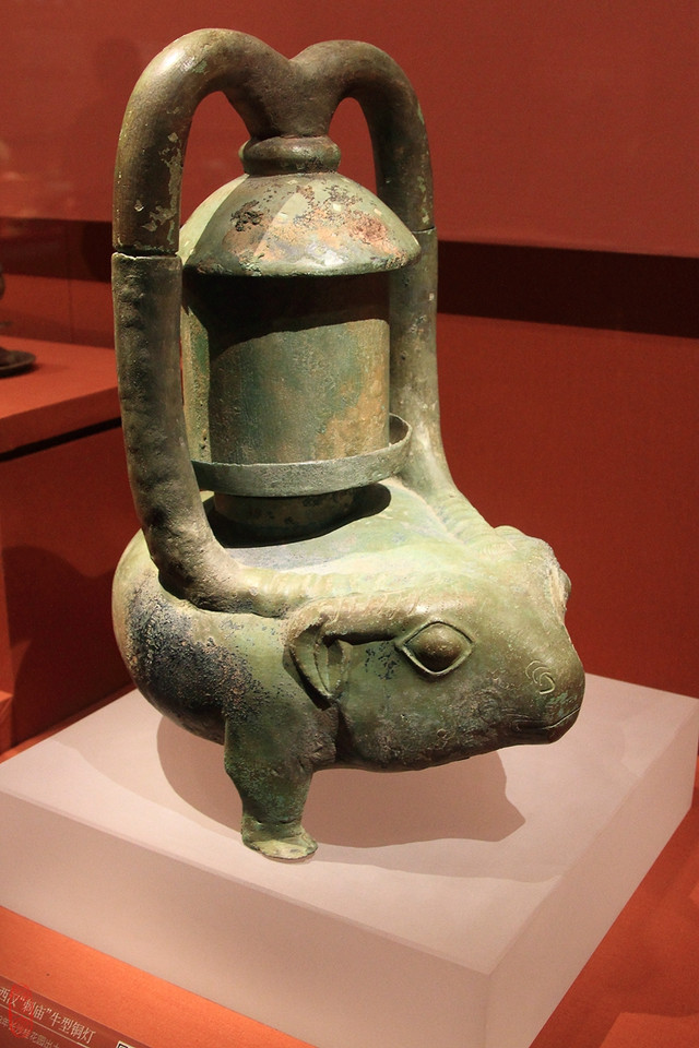 “敕庙”铜牛灯:以牛为灯形,汉代灯具中的精品