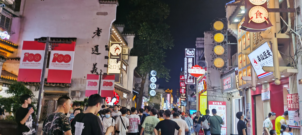 到达立马去体验长沙磁悬浮,到达南站后,懒得倒地铁了,打车到酒店,办理好入住,立马打卡茶颜悦色,五一广场的太平老街吃起来。不得不说,夜晚,这里,人真多!