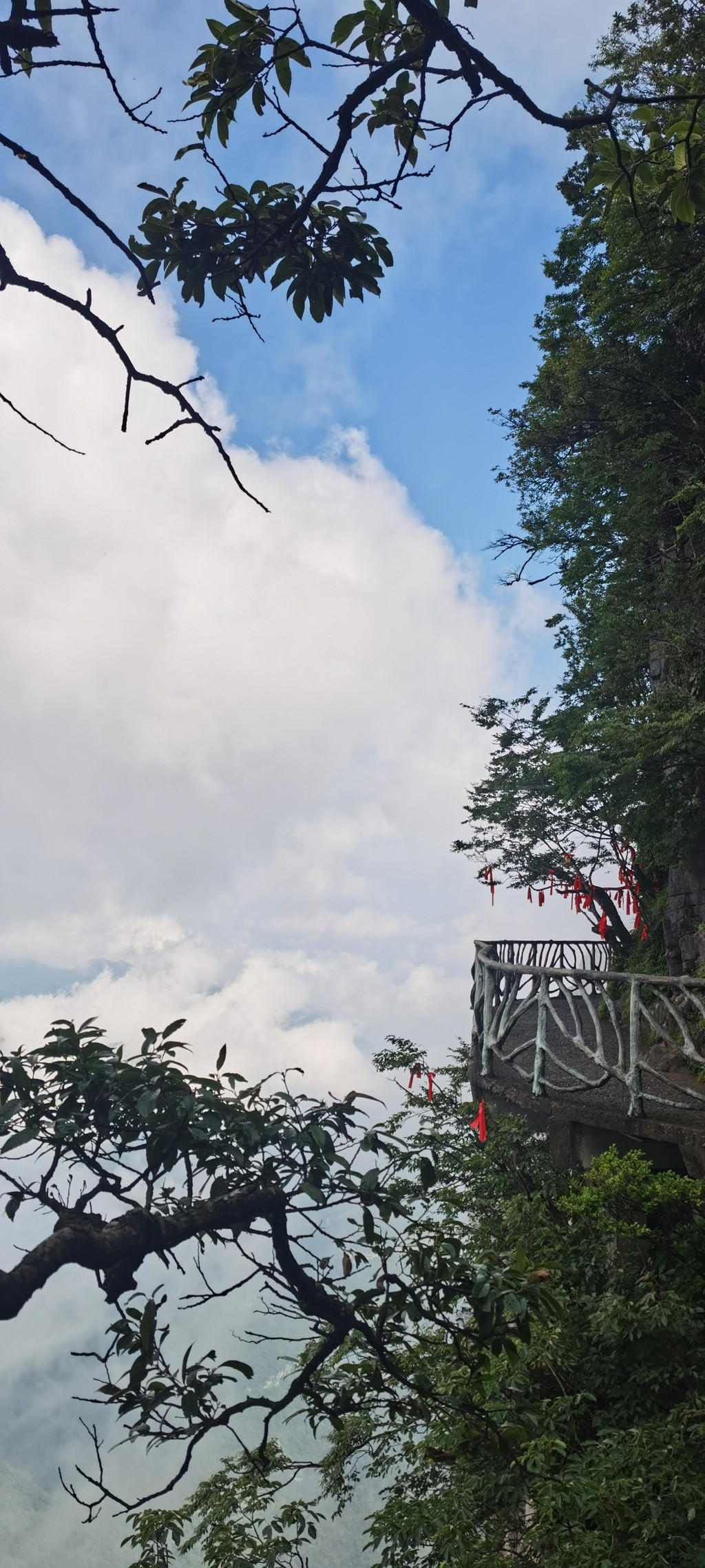 天公作美啊,所到之处地上的积水证明刚刚下过雨,可是我们到的时候就不下雨又不晒,云层飘来飘去,如仙境一般,舒服的好日子。而且不知道是不是限流的原因,人并不算多,属于可以自由观景又不寂寞的舒适人数。