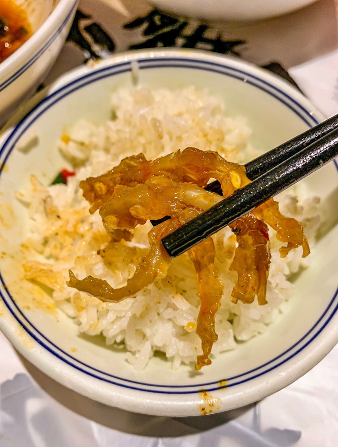 毕竟在 长沙 ,开了22年,是 长沙 城里湘菜排名第一的饭馆。特色菜是有鸭掌筋、酸辣鱿鱼卷,酸萝卜炒肚丝、泡辣椒炒牛肉...辣是真的辣,下饭是真的下饭。