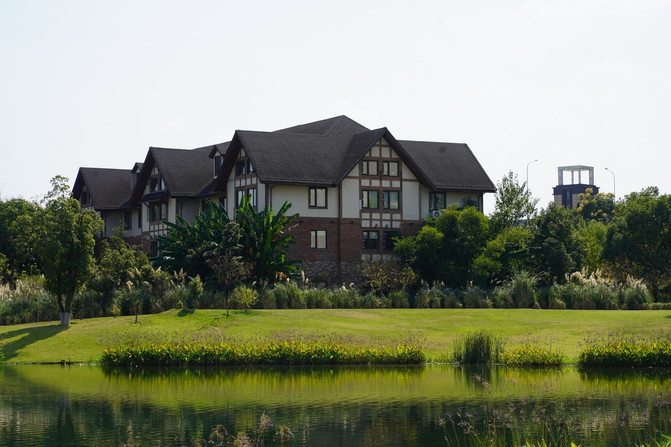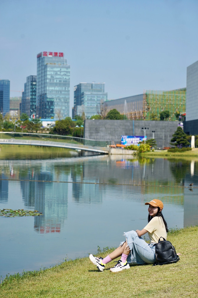 艺术区有一个大大的湖,湖上有一个完完全全的桥可以直接穿到湖对面。