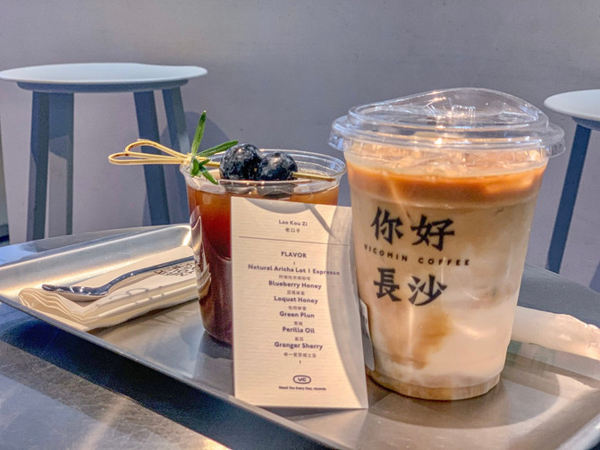 Vicomin coffee咖啡杯壁印有“你好 长沙 ”的字样,店门口有“很 长沙 ”的LOGO,,门口置物台的“来一杯 长沙 ”,都很适合拍照。