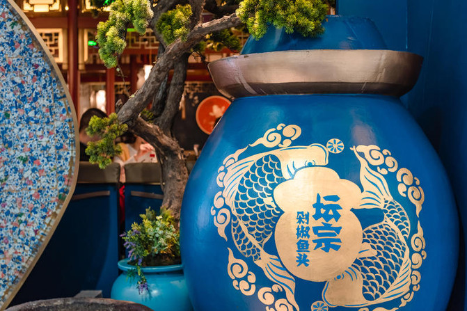 店面蛮大的,有包间也有大厅的隔间。装修是蓝色的主调,坛宗,坛宗,我在门口也看到很多坛子。