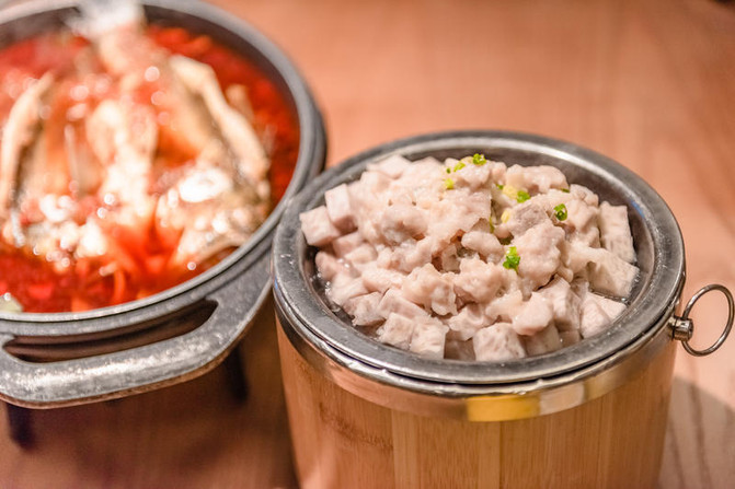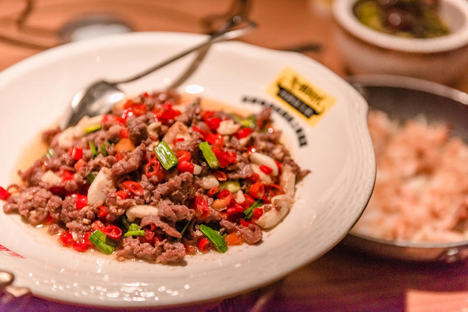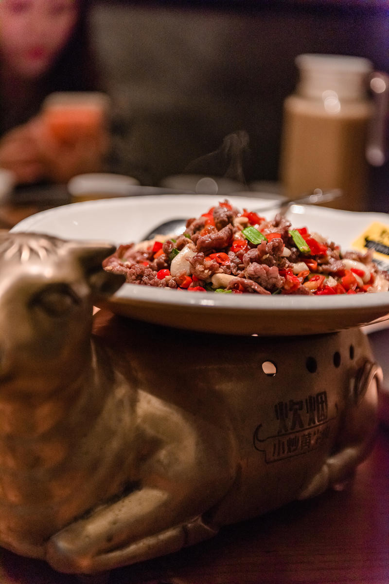 看了一眼基本上每桌都点了,店里电视都在播这道菜上了湖南卫视哈,颜色搭配很好看,看着胃口就好。牛肉很嫩,肉比较瘦一些选料好一点,很入味,就是有点辣。底座有一个精致铜牛锅加热,保持口感,菜也不会冷掉。