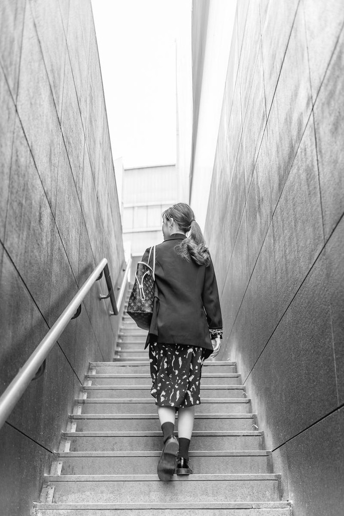 向上的楼梯有很强的延伸感,看起来腿也会比较长一点。
