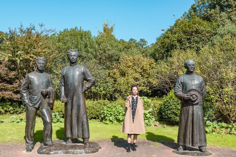 弱弱的我和伟人雕塑合照