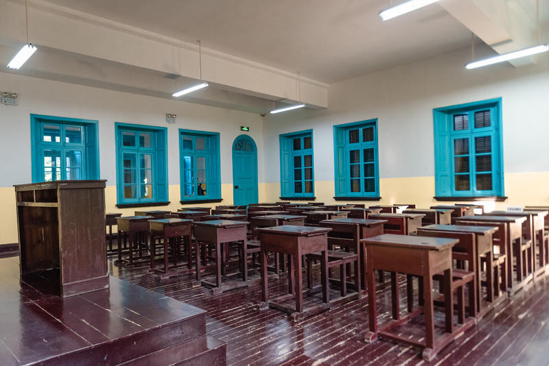 书桌都很旧了,年代感很强。