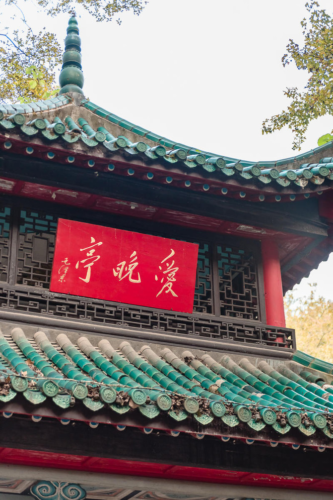 爱晚亭就是个小亭子,不大。但是整体红色的古风风格,还是很美,我发现我还是蛮吃这种风格的。看到就想拍照。