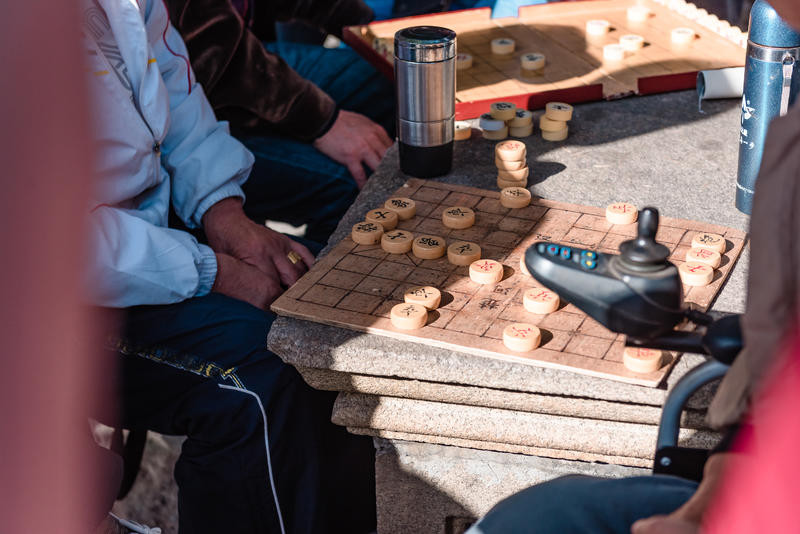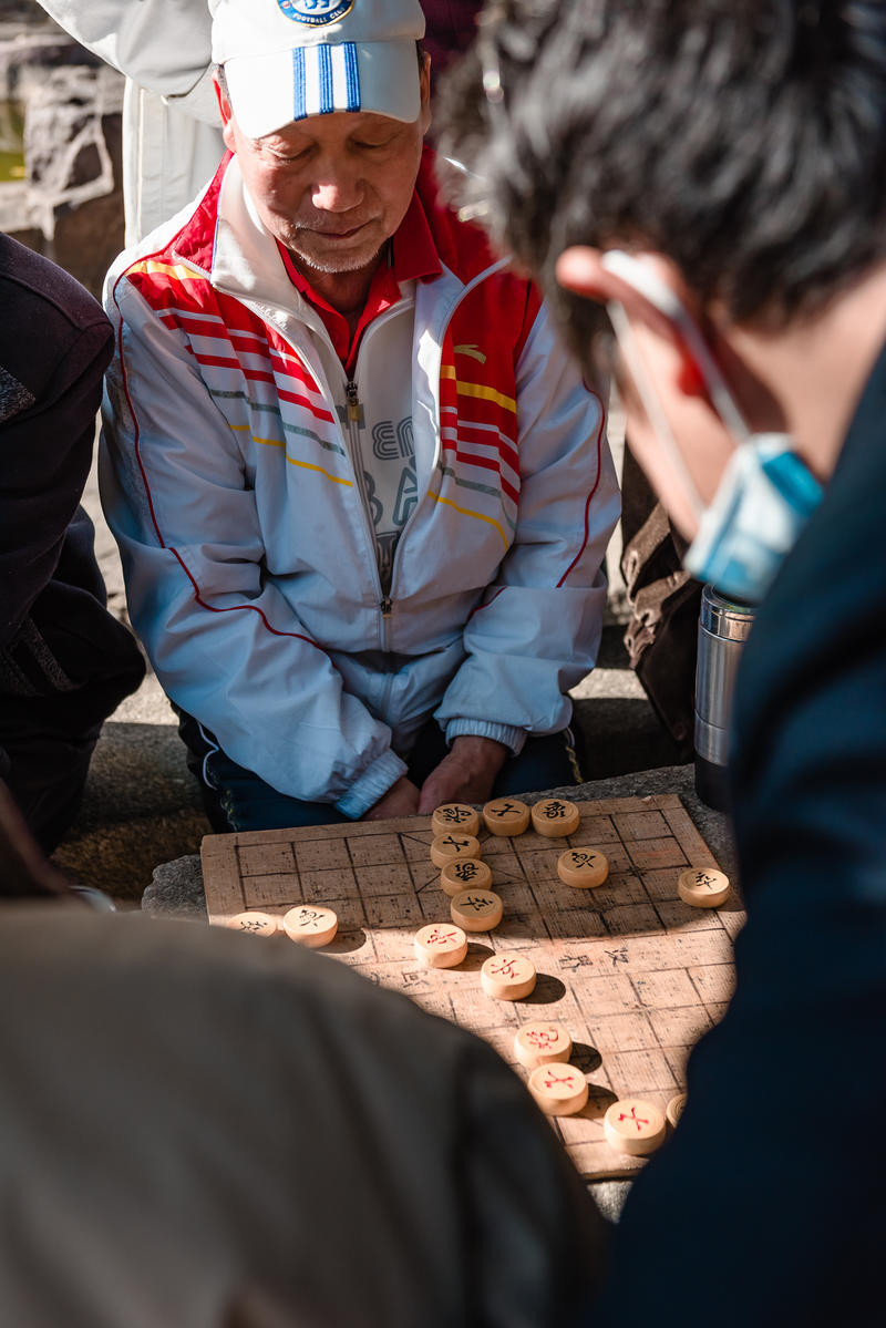 这个叔叔下棋很厉害,哈哈哈看他一直赢。