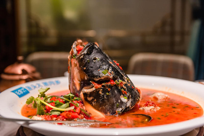 一个大盘端端上来的时候有惊到,服务员把鱼头淋上伏特加,点火🔥,很壮观。店员边做这些也会吆喝吉利话。哈哈哈有点夸张了。