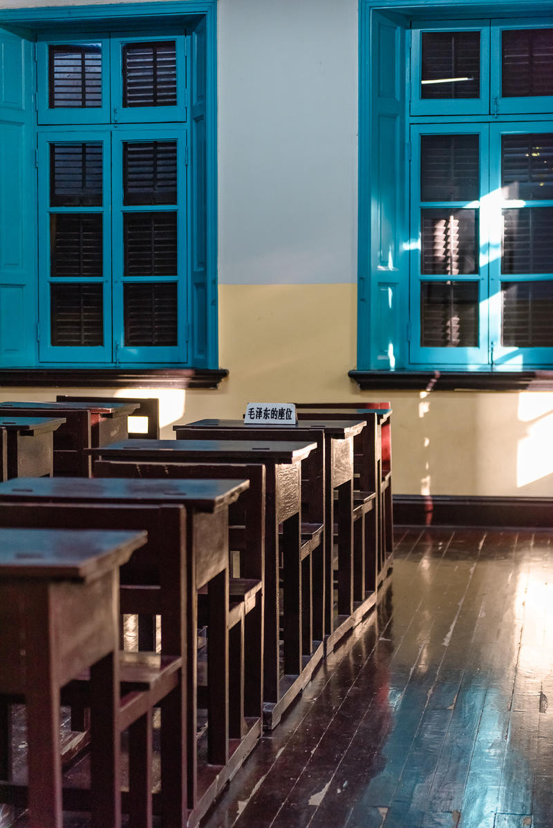 湖南第一师范是毛泽东初心形成地,也是毛泽东思想的萌芽地。毛爷爷和第一师范有着非常深的羁绊感。建筑非常的民国风,看到第一师范四个字就感觉浓浓的毛主席笔风的感觉。《恰同学少年》就是在这里拍摄的。校园很美,胶片和日系风的片子在这边都可以拍,复古怀旧类的也很适合,校园里面有个大讲堂很有感觉。秋天落叶转黄,老旧的屋檐给我一种庭院深深的感觉。