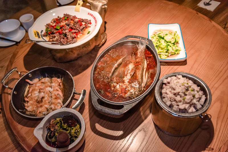 蒜蓉水晶虾蒜蓉碾得很细,基本上不会直接吃到,很香一层铺在虾子上面,虾子很新鲜,不是炸的每一只都是被剥过壳了的,就是一些些,不太够吃。行李放一楼就可以 不用搬来搬去。3.坛宗剁椒鱼头