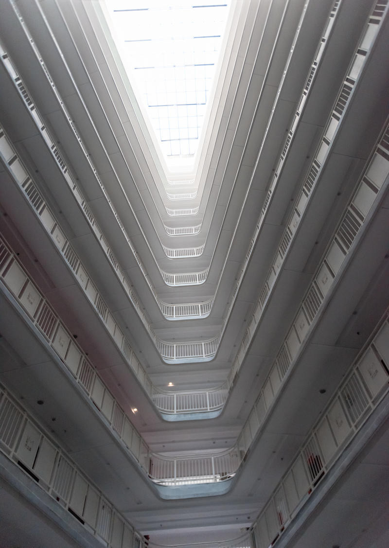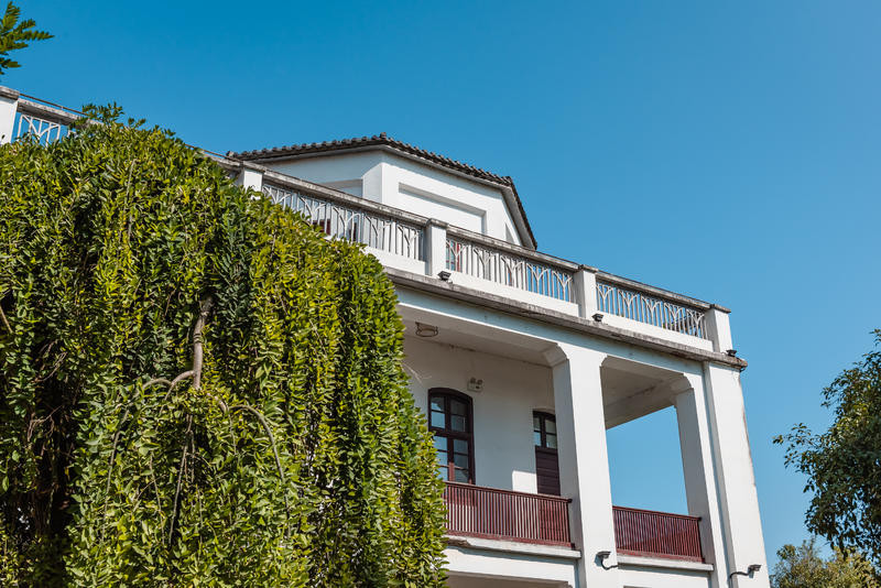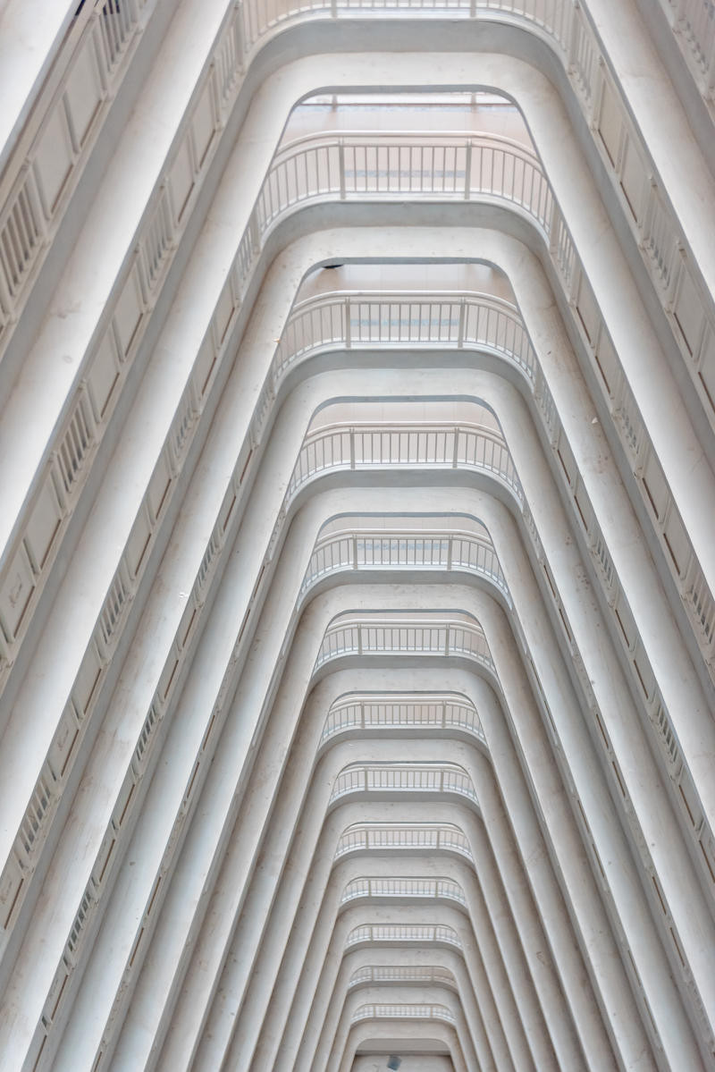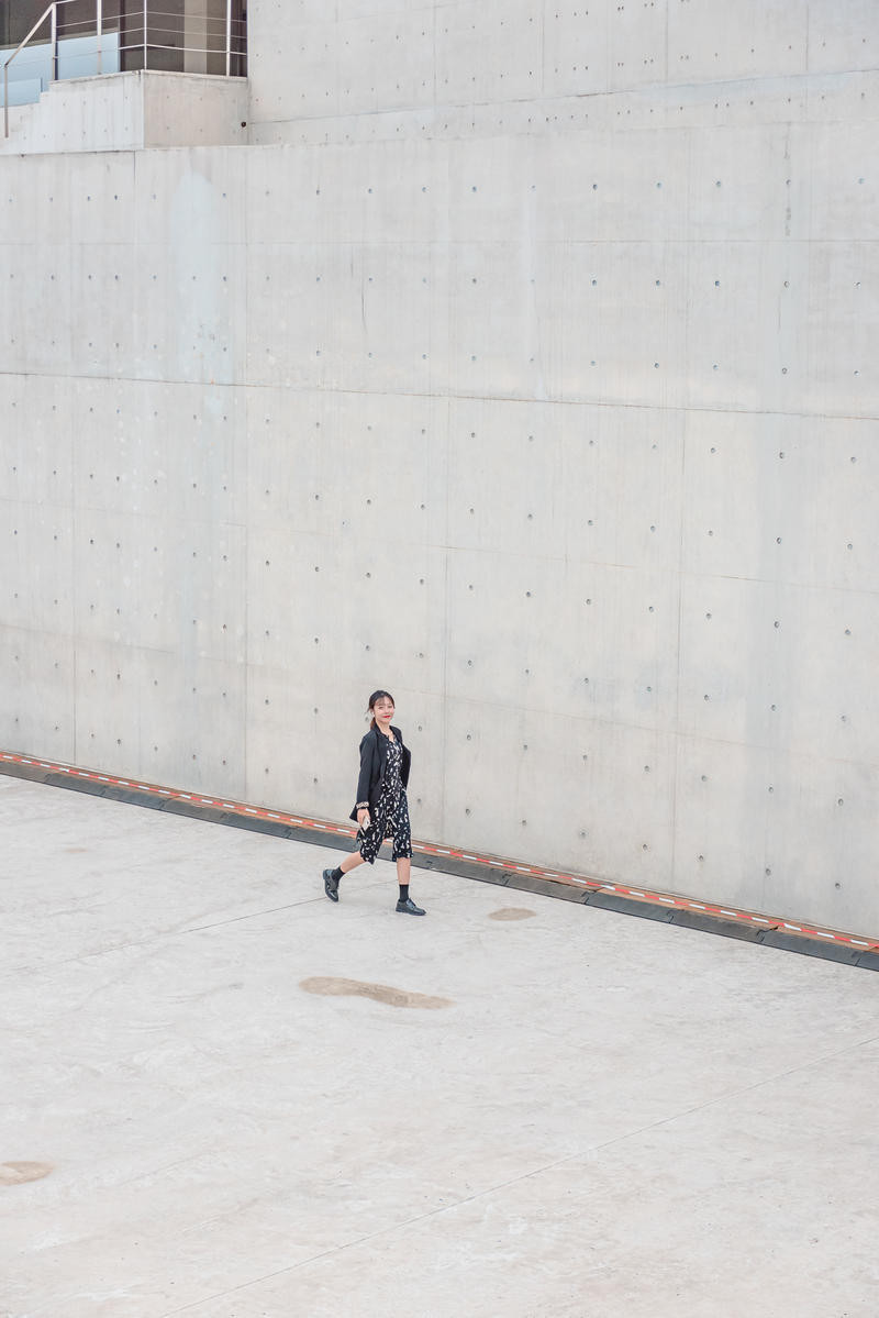 白色的建筑就像空白的大背景,和我的黑色西装有点搭配哦,喜欢拍照的PLMM可以在楼梯口拍照看看。